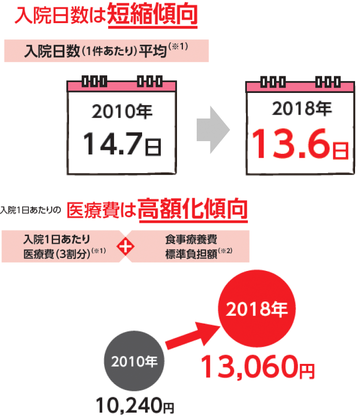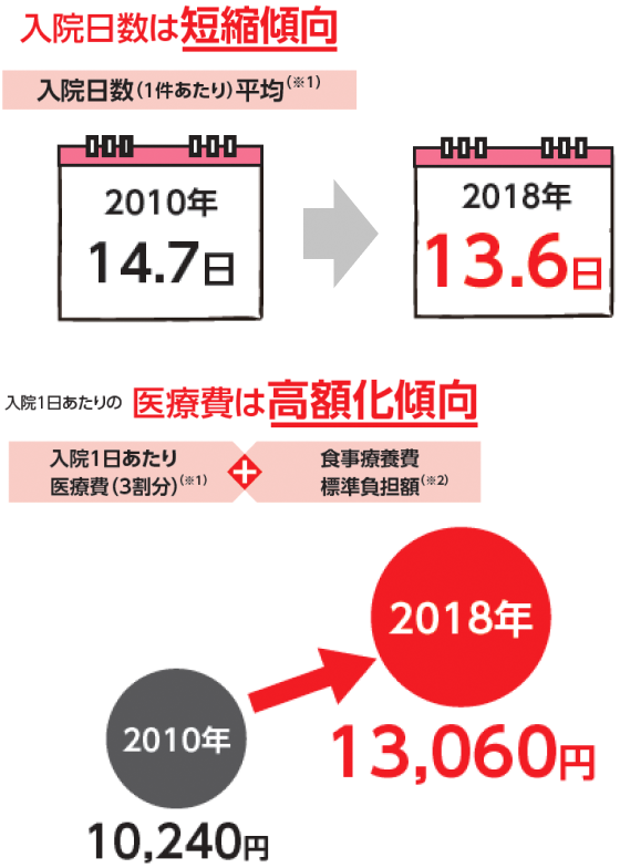 保険会社を問わず、ご加入されている医療保険の「入院日額」と組み合わせた合理的な備えが可能です。